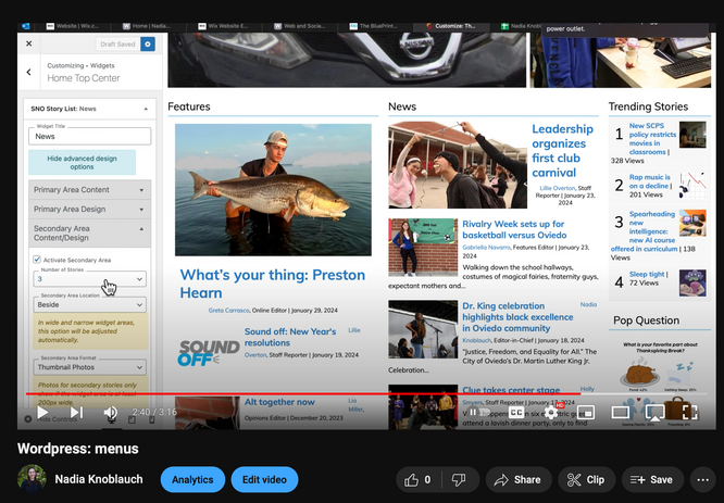 When running an online publication, it is not only the quality of stories that matter, but the quality of the appearance of the posts themselves. Our website is run on the program Adobe Wordpress, so over the past three years, I've become proficient in this program and its applications. Seen in Editing, Leadership and Team Building, my staffers are required to share the link to their story's website draft on their rough copies, allowing me and my online editor to view the story on our website before it is published.